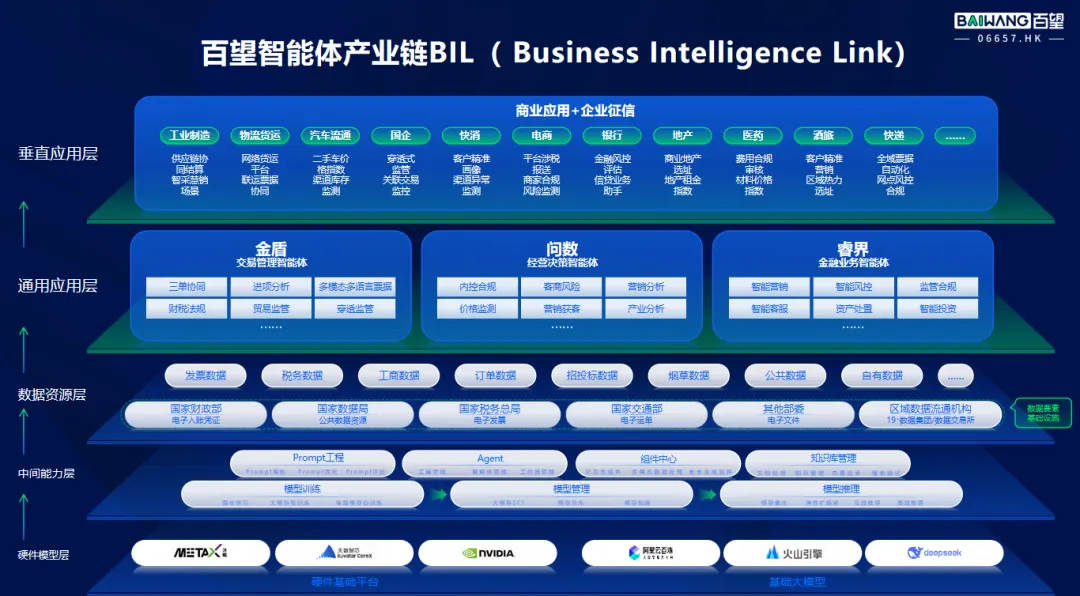 数据资产优势:凭借长期在发票、交易等高频强合规场景的沉淀,百望积累了超千万亿级别的高度结构化、真实可信的企业级数据,为AI训练与应用提供了“根基”。